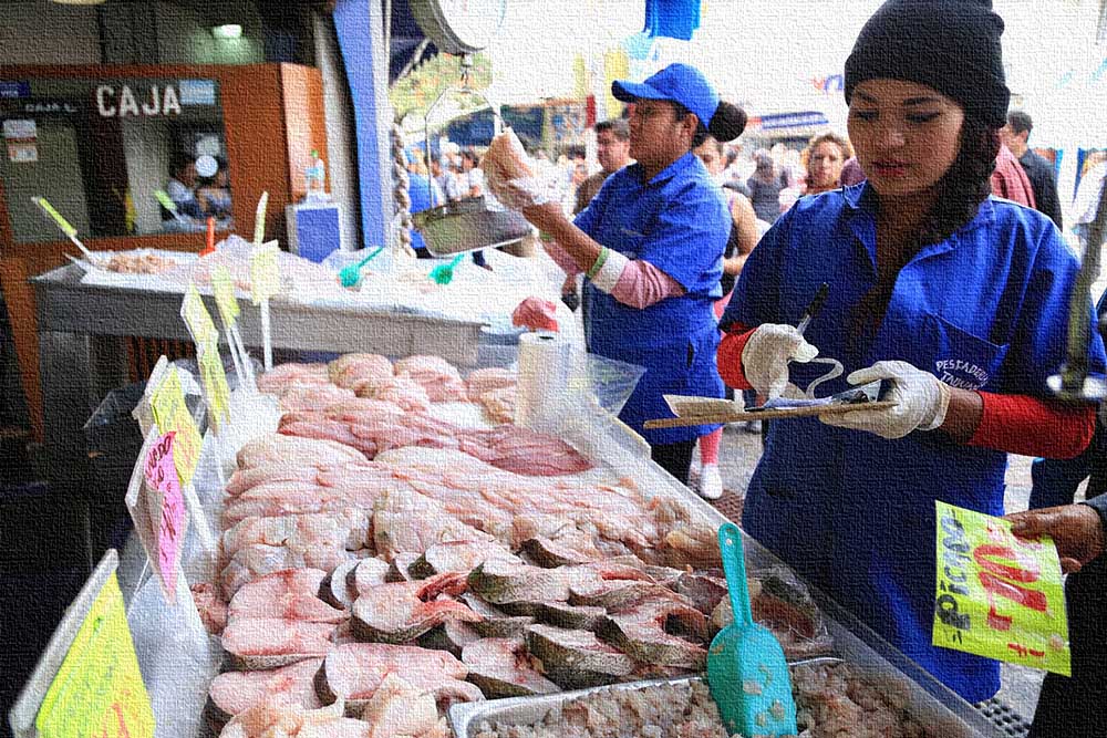 ¿Para qué ir a la playa si aquí hay todo? Bueno, casi todo: no hay playa, pero cierre los ojos, aspire y ciertamente huele como si allá, pasando la calle, estuviera el malecón. ¿Para qué queremos mar si ni nos hemos de meter? Y como se viste, la gente ayuda a la ambientación: ante el mucho calor, poca ropa, puro shorcito. En uno de los varios restaurantes que abundan en el Mercado del Mar, un grupo norteño toca y toca puros corridos de narcos. En las mesas no faltan las cubetas repletas de cervezas y por allá un pescado zarandeado y más allá un platón con ostiones y en la mayoría de las mesas cocteles de pulpo y camarón. La gente que no salió o no pudo o no quiso salir de vacaciones, está aquí. Si no está comiendo, es que anda comprando para comer en casa. Y en los pasillos, la competencia por el cliente es encarnizada (¡uy!, perdón, es vigilia, ¿podremos decir “enpescadada”?). Hay gritos (¡pásele, aquí está más barato!), coqueteos (¡pruebe nomás qué ceviche se hace con este pescado!) y hasta puesta en escena: se podría hacer un concurso del mejor montaje de los productos que venden, poco falta para que le pongan peluca y ojitos a ciertos pescados.