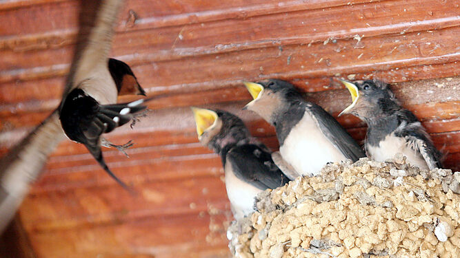 No era canto de aves, no era un chillido, era un zumbido. Miles de golondrinas llenaban la casa con nidos de barro, con polluelos hambrientos, como abejas en primavera. Alrededor de las seis de la tarde las golondrinas adultas regresaban con el cogote lleno de puré de insectos que regurgitaban encima de sus pequeñas aves. En los alambres, en los postes, en los árboles, en otras casas. Una plaga.
