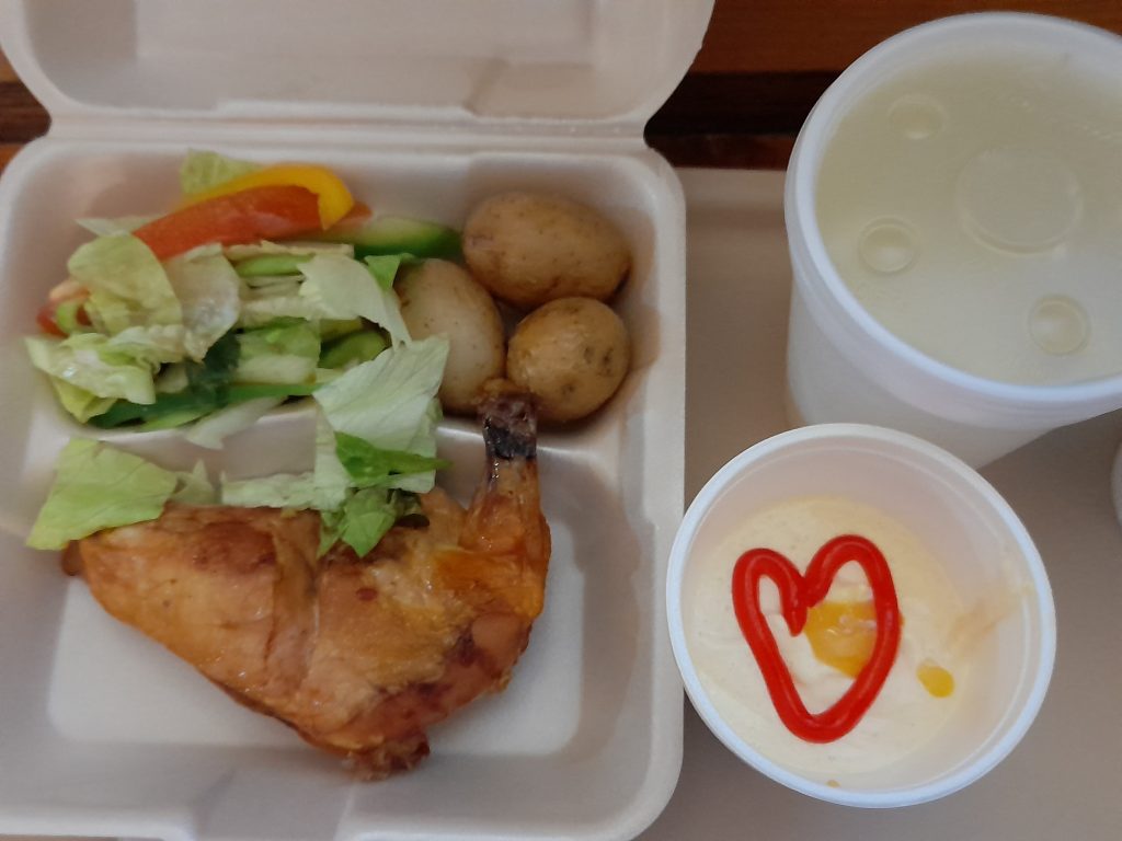 Son las 8:55 y la voz de un hombre junto a mi puerta seguida de dos toquidos me despierta. No quiero levantarme, pero solo tengo una hora para desayunar o se llevan la comida. Espero los dos minutos reglamentarios para que el chico se vaya y me pongo el cubrebocas. Abro la puerta y junto a ella veo una charola sobre una silla de plástico. La tomo y entro. Huevo revuelto, frijoles, verdura y un chocolate en recipientes de unicel desechables es el menú.