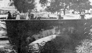 Cuando las lluvias eran torrenciales, al terminar de llover no se podía cruzar la calle de una banqueta a la de enfrente sin mojarse los zapatos, los niños de aquella época hacían puentes con tablas y piedras, se metían sin zapatos a la corriente y daban la mano a las señoras que querían cruzar la calle por el puente, mediante un pago moderado.